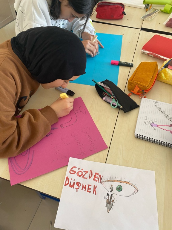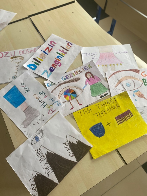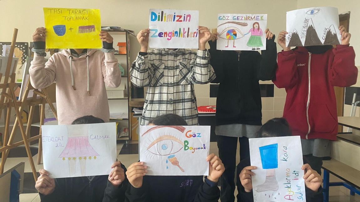 Okulumuzda Dilimizin Zenginlikleri kapsamında Görsel Sanatlar Öğretmeni Melik ERKORKMAZ tarafından öğrencilerle Deyim ve Atasözlerini Resmediyoruz etkinliği yapıldı. Öğrenciler okulda etkinliklerini sergilediler.