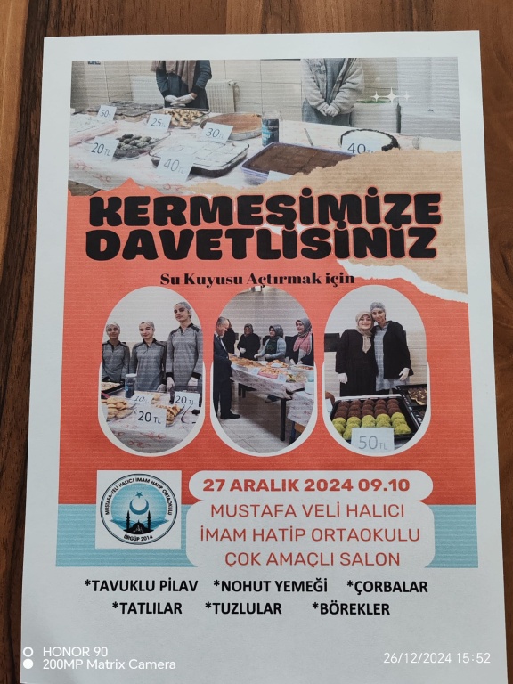 ‘Kardeşime Su Oluyorum’ projesi, 25-27/30-31 Aralık 2024 tarihlerinde gerçekleştirilmiştir. Toplumsal ve Sosyal Sorumluluk Projesi olarak hayata geçirilen “Kardeşime Su Oluyorum” Projesi 12 Haziran 2025 Tarihinde Türk Diyanet Vakfı aracılığıyla Uganda’ da Okulumuz Mustafa Veli Halıcı İmam Hatip Ortaokulu adına Su Kuyusu açılarak tamamlanmıştır.